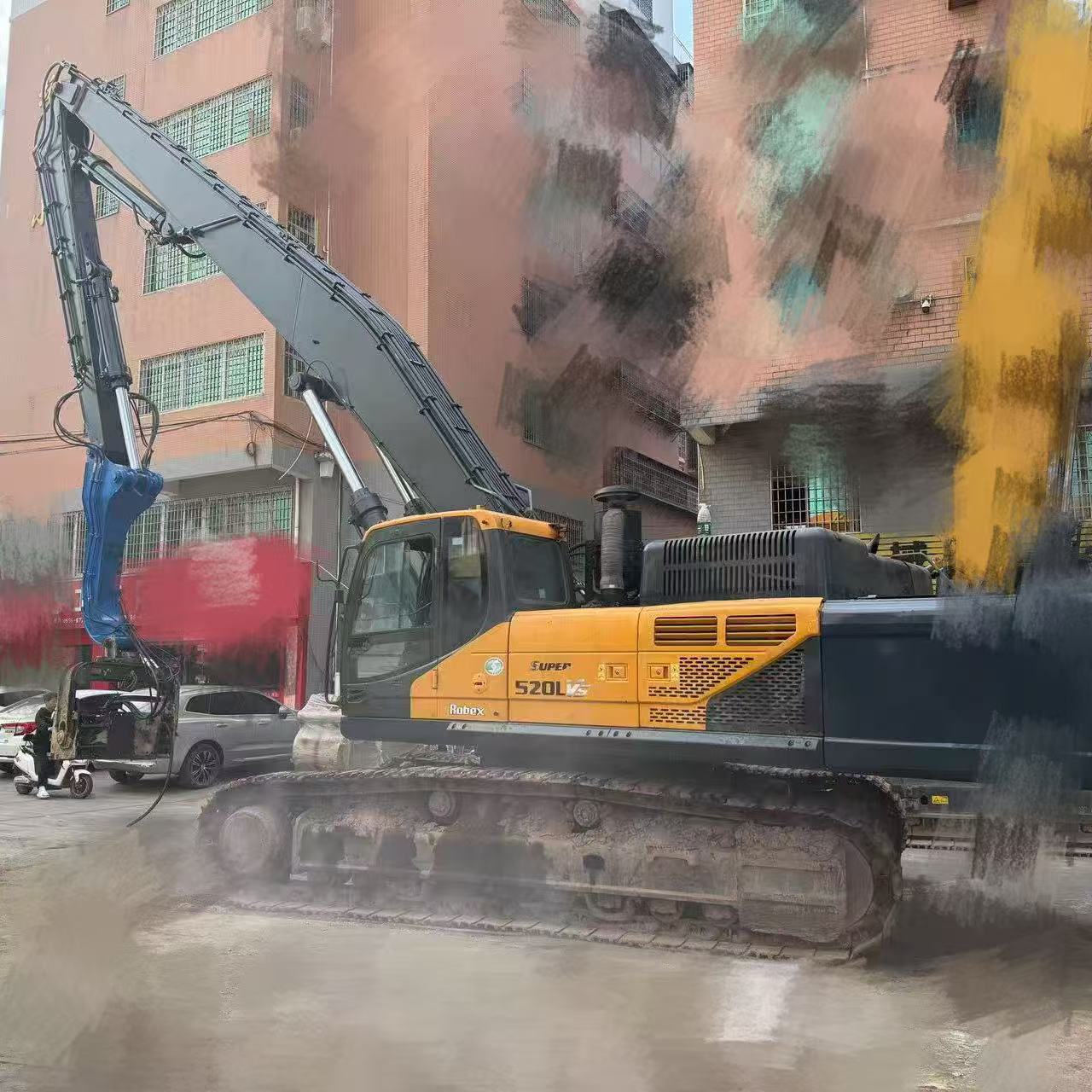 The HD520 Piling Arm Excavator is a heavy-duty solution designed for demanding foundation construction and piling projects.