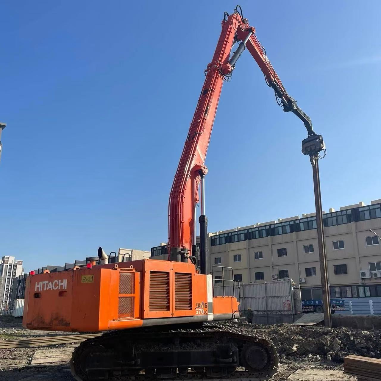 A escavadeira de braço articulado ZX670 é uma solução robusta projetada para projetos exigentes de construção de fundações e cravação de estacas.