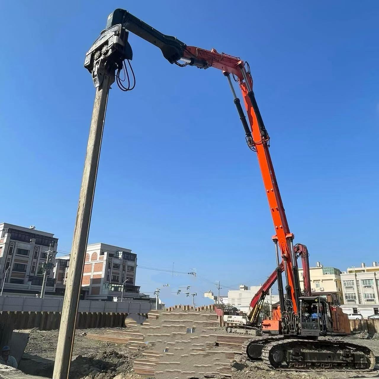 Este braço de escavadeira personalizado para cravação de estacas é amplamente utilizado na construção de pontes, obras de fundações profundas, projetos portuários e desenvolvimento de infraestrutura.